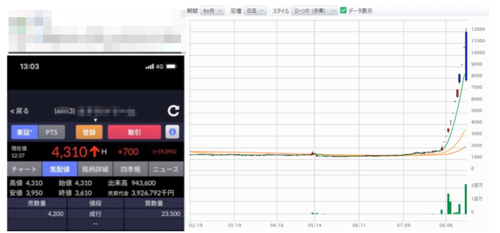 株価はぐんぐん上昇してついに新高値を更新。